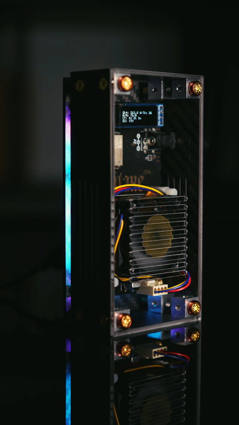 New Feature with the same price! The latest release reverion of RGBitaxe Ultra v204 with fancy RGB effect integrated. There are more than 100 build-in effect to switch by using the inclued remote control. This new added feature make it more decorative.